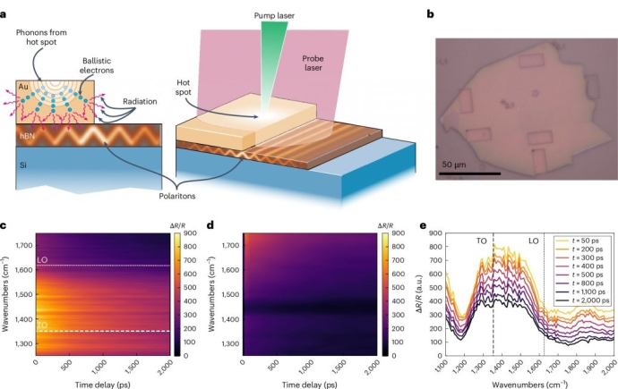 Исследователи добились этого, нагревая крошечную золотую подложку, лежащую на кристалле гексагонального нитрида бора. Вместо того чтобы медленно распространяться, тепло возбуждало уникальные свойства материала, превращая энергию в поляритонные волны, которые мгновенно переносили его через интерфейс между золотом и нитридом бора.