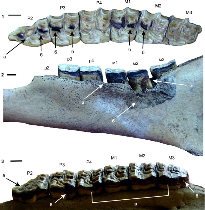 Выявленные патологии на зубах лошадей из раскопок в Старой Руссе. Изображение предоставлено пресс-службой МГУ